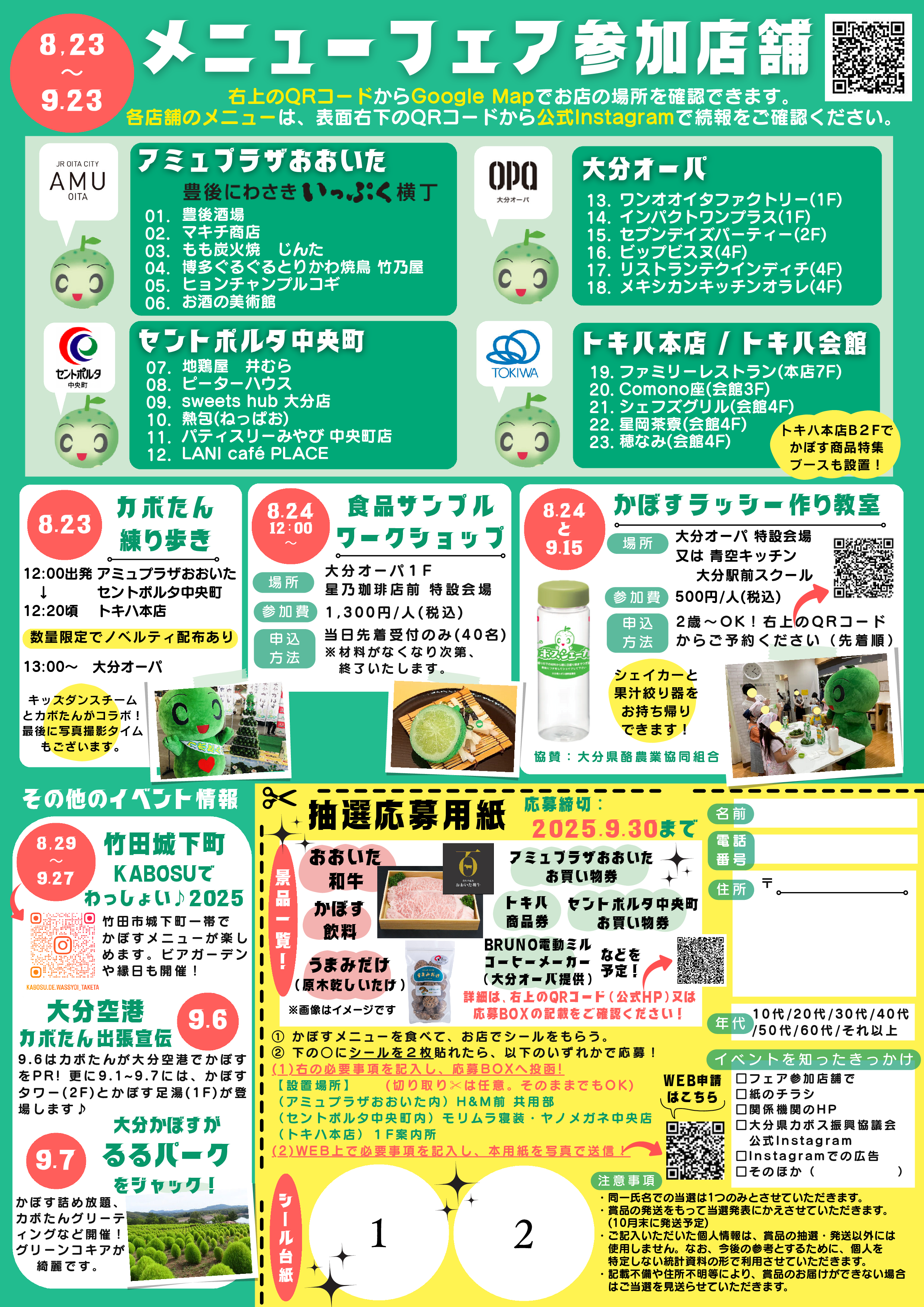 ・各会場の飲食店で「かぼすメニュー」を提供するフェア