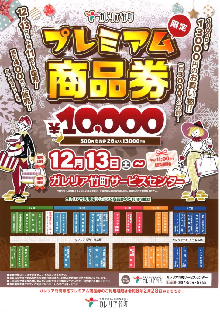 2025/12/13(土) プレミアム商品券販売 atガレリア竹町 投稿者: 大分市竹町通商店街振興組合まちなかエンジン2025年12月2日2025年12月2日イベント情報、お知らせ、竹町通商店街振興組合